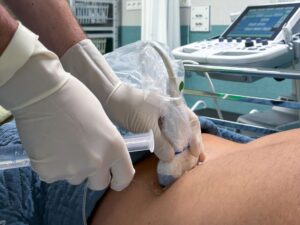 3️⃣ Traitement par anesthésie loco-régionale : une injection ciblée qui soulage rapidement la douleur, suivie d’une courte surveillance en salle post-opératoire et en service ambulatoire.